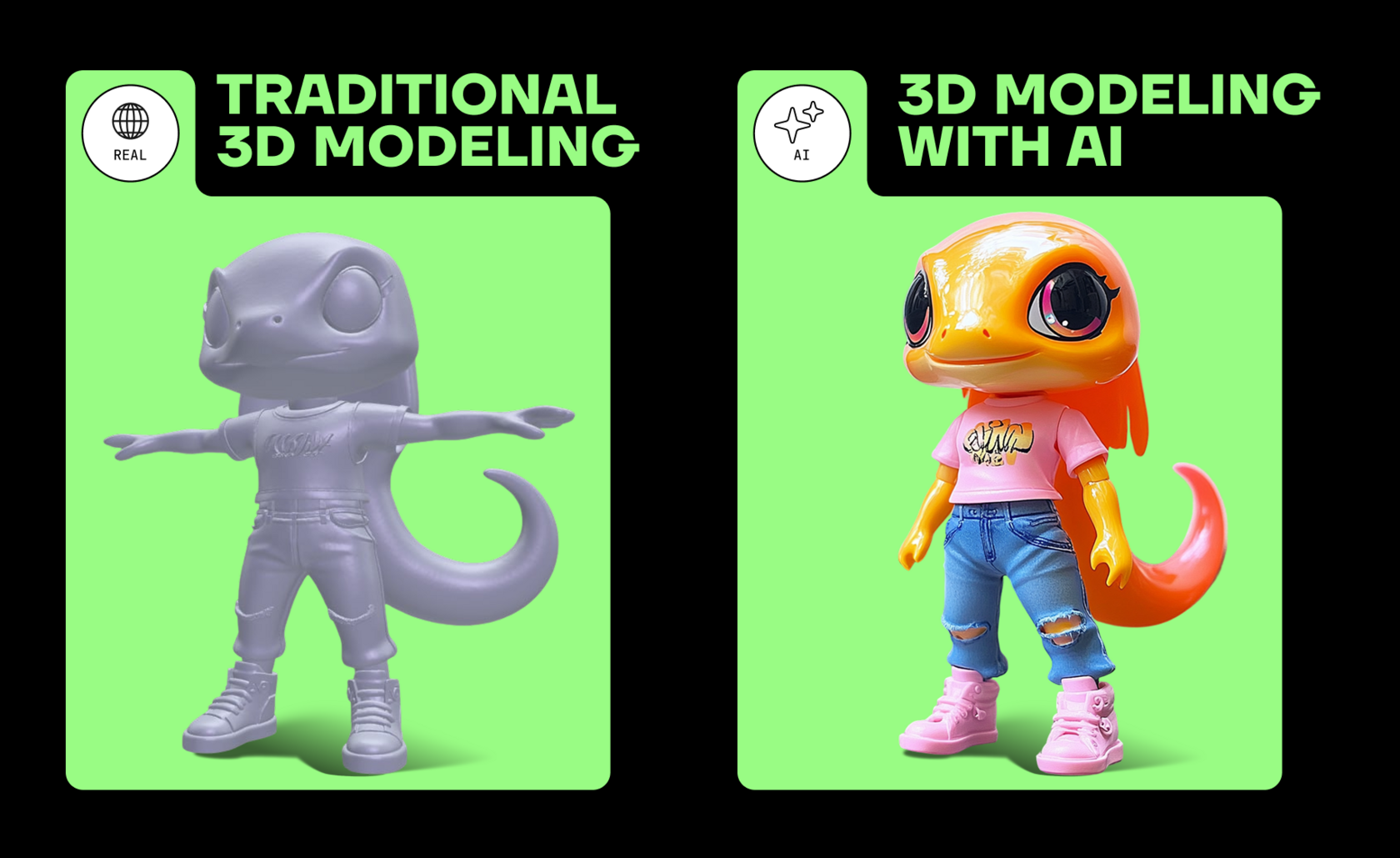 - Главное и абсолютное преимущество AI в 3D-дизайне – ускорение многих этапов. Традиционное моделирование персонажа требует дней или недель ручной работы (моделинг, скульптинг, развертка UV, текстурирование, риггинг и т.д.). Генеративные же модели способны создать базовую 3D-модель по текстовому описанию или эскизу за считанные минуты. К примеру, сервисы Meshy AI, Hunyuan 3D 2.5, spark3d генерируют трёхмерные объекты практически мгновенно на основе текстового промпта. Это позволяет командам быстрее получать черновые прототипы персонажей и итеративно дорабатывать их. В итоге время вывода продукта на рынок сокращается, а процесс создания маскота частично автоматизируется.